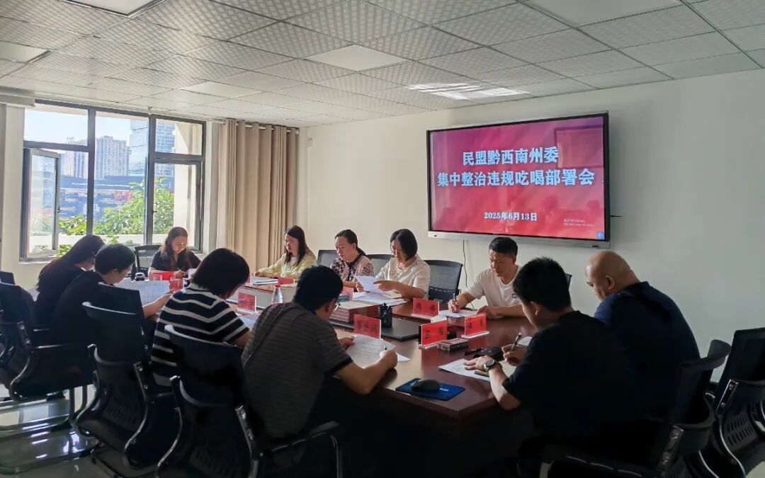 6月13日下午,民盟黔西南州委召开集中整治违规吃喝部署会。民盟黔西南州委专职副主委罗敏,民盟州直各支部、民盟兴义市工委有关负责同志和机关全体干部职工参加会议。会议由民盟黔西南州委秘书长张祺主持。