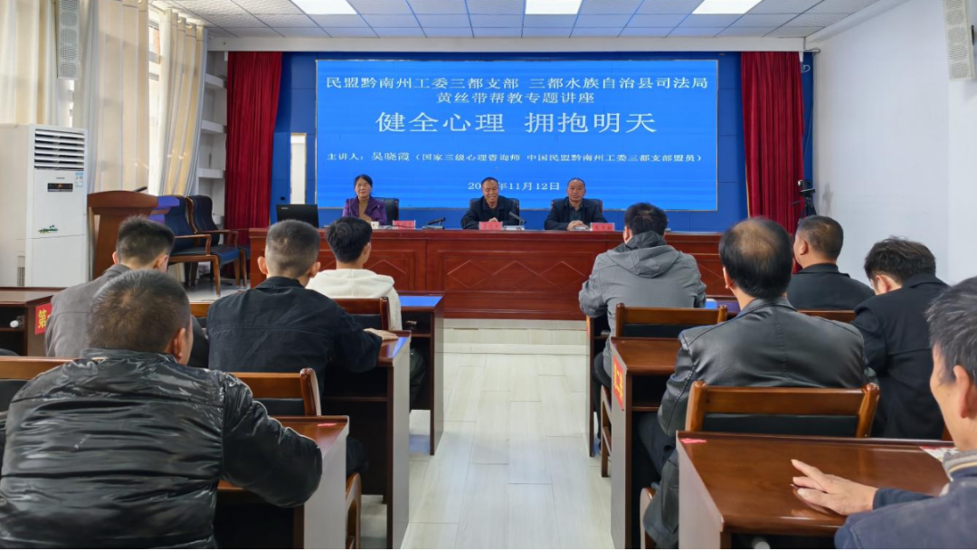 近日,三都县司法局与民盟黔南州工委三都支部联合举办“健全心理,拥抱明天”主题心理专题讲座。国家三级心理咨询师、民盟三都支部盟员吴晓霞应邀主讲,民盟三都支部主委韦光明及县司法局社矫科负责人出席活动,80余名社区矫正对象参加讲座。