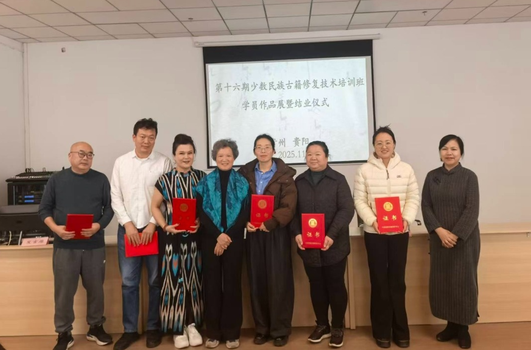近日,第十六期全国少数民族古籍修复技术培训班在贵州省图书馆圆满落幕,民盟黔东南州直机关支部盟员、黔东南州民盟专家古籍保护工作站古籍修复员吴仿娟参训并斩获佳绩,期间更获国家级古籍修复技艺传习导师、原中山大学图书馆资深古籍修复师肖晓梅亲授传承,正式拜师入门。