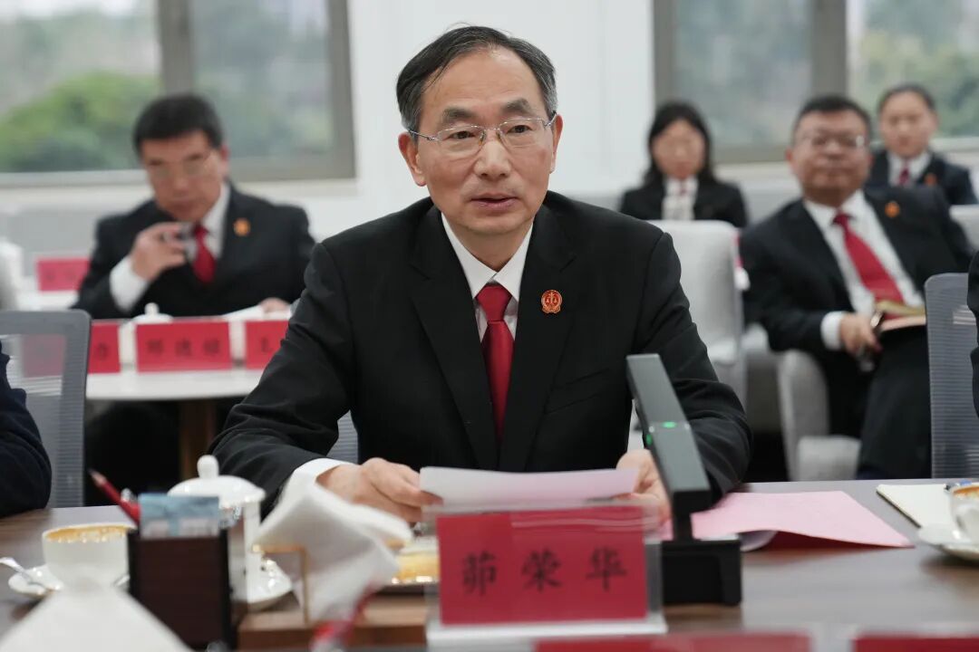 省人大常委会副主任、民革中央常委、民革贵州省委主委王世杰,省政协副主席、民盟中央常委、民盟贵州省委主委冉霞,民建贵州省委主委、民建中央常委、省政府发展研究中心主任陈婷婷,省政协副主席、民进中央常委、民进贵州省委主委、省卫健委主任孙发,省政协副主席、农工党中央常委、农工党贵州省委主委张光奇,省政协副主席、致公党中央常委、致公党贵州省委主委孙诚谊,省政协副主席、省工商联主席李汉宇,九三学社贵州省委秘书长胡英明出席座谈并讲话。省法院党组书记、院长茆荣华主持会议。省法院党组副书记、常务副院长张洪武通报2025年全省法院工作情况。